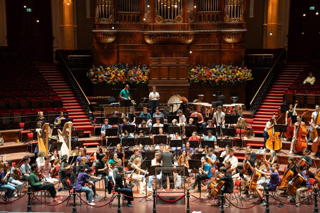 « La grande et belle surprise de la soirée demeure néanmoins en fosse, où l’Orchestre Français des Jeunes brille de mille feux sous la direction de sa nouvelle cheffe, l’Estonienne Kristiina Poska. Malgré le jeune âge de ses musiciens, et le fait que l'OFJ accompagnait pour la première fois de son histoire une œuvre lyrique mise en scène, l’orchestre n’a définitivement pas à rougir de la moindre comparaison avec des ensembles davantage rôdés : sous la baguette experte et bienveillante de la maestra, les pupitres tissent une toile musicale dans laquelle les notes perlent et glissent en nuances et en perspectives, rendant la grâce d’une musicalité à plusieurs niveaux, bien loin de la moindre unilatéralité. Présent dans l’ombre de la scène, les cuivres se déploient pour l’ouverture de la cinquième porte avec l’intelligence de ne pas écraser pour autant la fosse. L’équilibre est intelligemment maîtrisé et l’on ne peut que saluer le travail exemplaire et le rendu magistral de l’Orchestre et de la direction musicale de Kristiina Poska. »